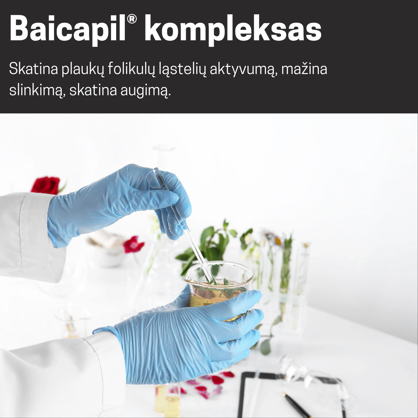 | Baicapil® kompleksas - skatina plaukų folikulų ląstelių aktyvumą, mažina slinkimą, skatina augimą | ![]() |