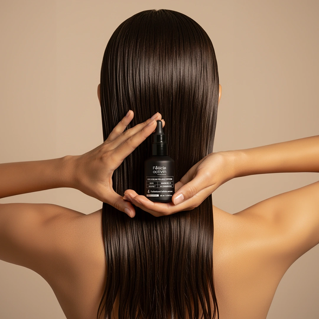 Mūsų FOLLICLE ACTIVIN serumą sukūrė ekspertų komanda, kurios tikslas buvo sumažinti plaukų slinkimą, įgimtą retėjimą ir suaktyvinti folikulų veiklą, kad plaukai augtų greičiau. Šis serumas sukurtas naudojant specialią technologiją, kuri padeda atkurti plaukų folikulų veiklą. Serumas veikia tiesiogiai aprūpindamas galvos odą bei plaukus gyvybiškai svarbiomis maistinėmis medžiagomis.