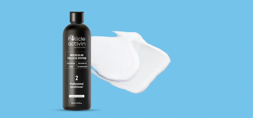 FOLLICLE ACTIVIN drėkinamasis preparatas užvers plauko kutikulę, suteiks plaukams spindesio bei gyvybingumo, sulygins porėtą plauko stiebą. Palikite veikti 5-10 min.