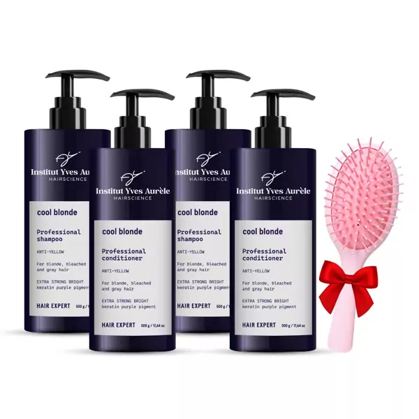 2x Cool Blond kondicionierius (500 ml): AQUA (WATER), CETEARYL ALCOHOL, METHOXY PEG/PPG-7/3 AMINOPROPYL DIMETHICONE, HYDROLYZED KERATIN, PROPYLENE GLYCOL, PALMITAMIDOPROPYLTRIMONIUM CHLORIDE, PANTHENOL, GLYCERIN, PARFUM, CITRIC ACID, PHENOXYETHANOL, POTASSIUM SORBATE, SODIUM BENZOATE, METHYLCHLOROISOTHIAZOLINONE, METHYLISOTHIAZOLINONE, METHYLPARABEN, ETHYLPARABEN, PROPYLPARABEN, BUTYLPARABEN, LINALOOL, CI 60730.