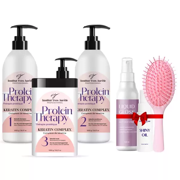 Protein therapy kaukė (1000g): Aqua, Cetearyl Alcohol, Behentrimonium Chloride, Glycerin, Hydrolyzed Silk, Hydrolyzed Keratin, Cyclopentasiloxane, Dimethiconol, Aloe Barbadensis Leaf Juice, Panthenol, Parfum, Isopropyl Alcohol, Phenoxyethanol, Ethylhexylglycerin, Citric Acid, Imidazolidinyl Urea, Methylchloroisothiazolinone, Methylisothiazolinone, Sodium Benzoate, Potassium Sorbate, Methylparaben, Ethylparaben, Propylparaben, Butylparaben.