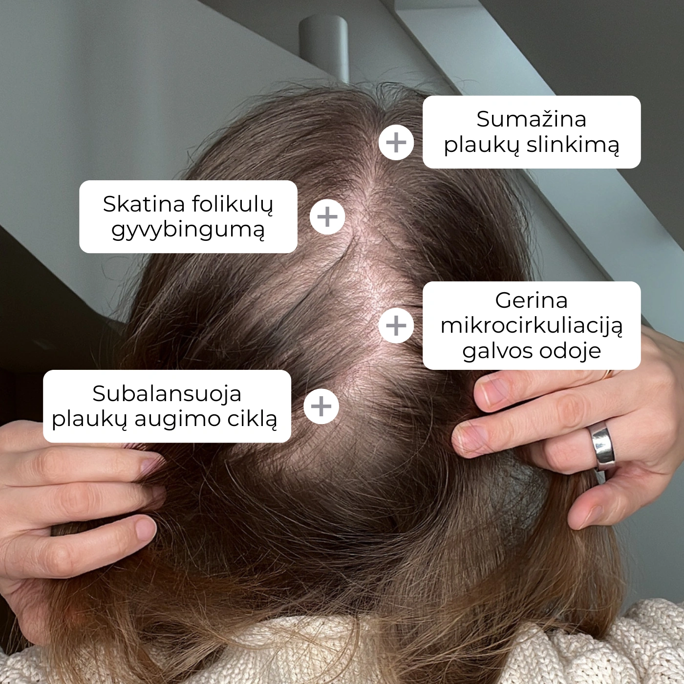 Padeda išlaikyti sveiką plaukų augimo ciklą