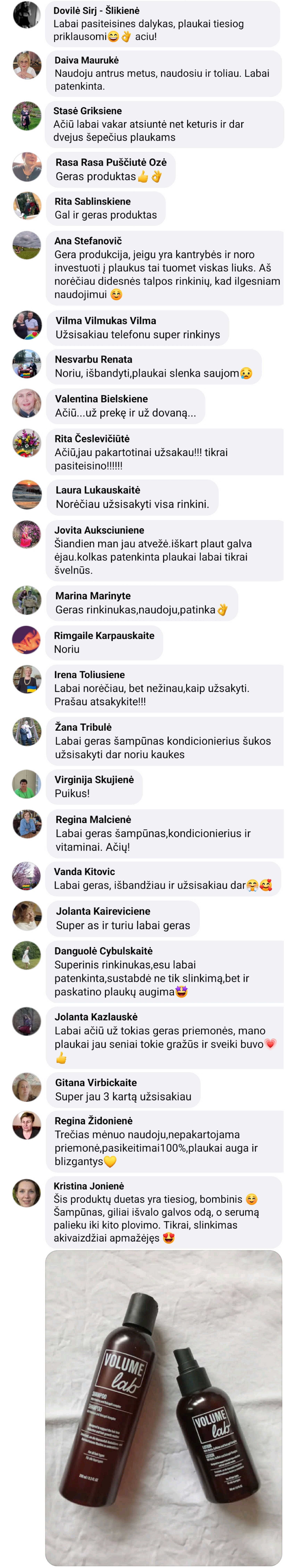 VOLUME LAB kondicionierius (250 ml): Aqua, Cetearyl Alcohol, Behenamidopropyl Dimethylamine, Macadamia Ternifolia Seed Oil, Lactic Acid, Benzyl Alcohol, Hydrolyzed Wheat Protein, D-panthenol, Sodium Benzoate, Glycolic Acid, Quaternium-80, Potassium Sorbate, Peg-7 Glyceryl- Cocoate, Laurel Glucoside, Fragrance, Caprylyl/capryl Glucoside, Biotin, Propylene Glycol, Phenoxyethanol.